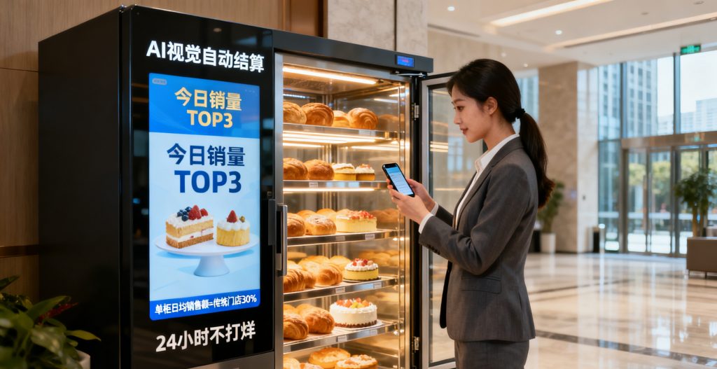 搭载 AI 视觉的智能烘焙柜,支持扫码取货自动结算,单柜日均销售额达传统门店 30%,成为写字楼新宠。